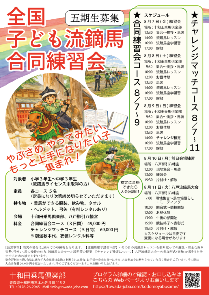 「チャレンジマッチ出場選手募集!」全国子ども流鏑馬合同練習会